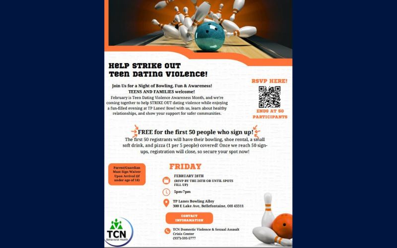 Friday, community members are invited to join the TCN Domestic Violence and Sexual Assault Crisis Center for a night of bowling, fun, and education at TP Bowling Lanes in Bellefontaine.