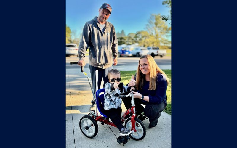 Waylon Roberts, the son of Will and Andrea Roberts, has received a specially modified Amtryke, thanks to the generous efforts of several local organizations, including the Kiwanis, Sons of the American Legion, the Moose Lodge, GreeneBucs, and the Logan County Board of Developmental Disabilities (DD).