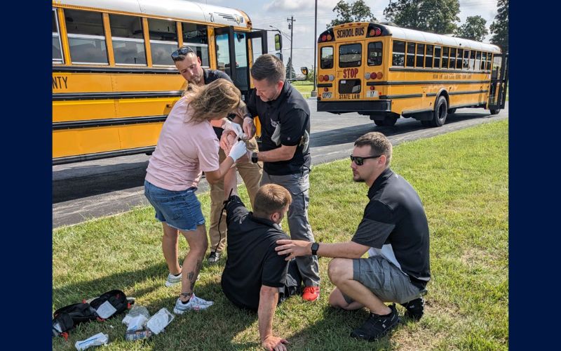 In late July, local bus drivers participated in S.T.A.R.T. training, which stands for School Transportation Active-Threat Response Training on Indian Lake’s campus.