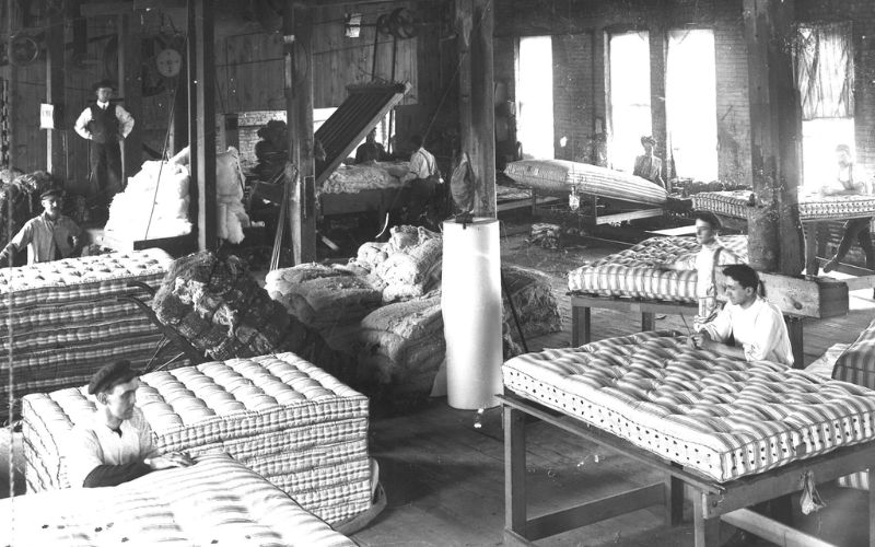 During World War I, Peerless Bedding secured a government contract for 15,000 felt mattresses and significantly expanded production. At this time, they were averaging about 250 mattresses every other day. They also manufactured mattresses of cotton, wool and silk fiber, and pillows made of both feathers and cotton.