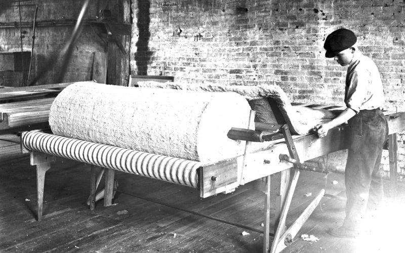In October, the company installed new machinery to produce rugs from recycled carpets. At that time, it employed 30 to 40 workers and regularly completed large shipments. During this period, John C. Sullivan sold his interest in the company to C.H. Morse of West Mansfield, who assumed management.