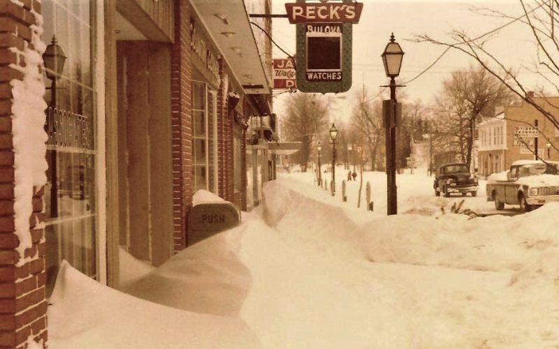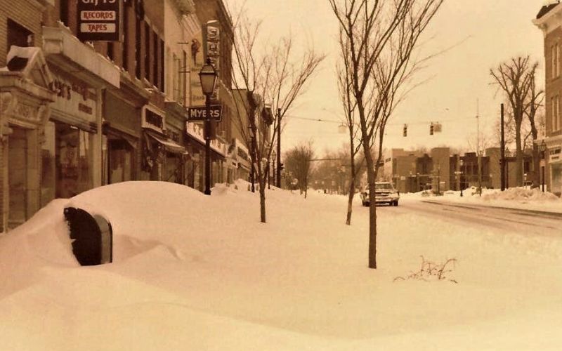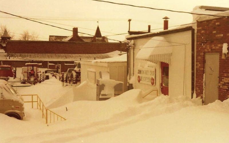 January 25, 1978, started out as a fairly warm rainy day, but the rain changed to snow, and the temperature dropped. The snow became heavier, and the wind began to blow causing drifting that made roadways impassable. The barometer reached a record low of 28.66, winds were recorded at 69 mph, the temperature was 3 degrees with a wind chill factor of -65 degrees. Twelve inches of snow fell in 24 hours with a record 25.5 inches on the ground.