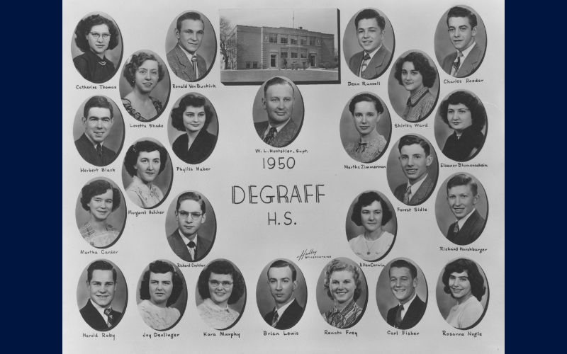 In 1950, there were graduating classes from Belle Center, Bellefontaine, DeGraff, East Liberty, Huntsville, Lakeview, Lewistown, Middleburg, Monroe, Quincy, Rushsylvania, Stokes, Washington, West Liberty, West Mansfield, and Zanesfield.