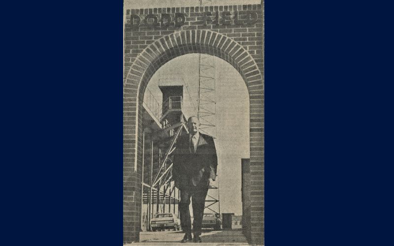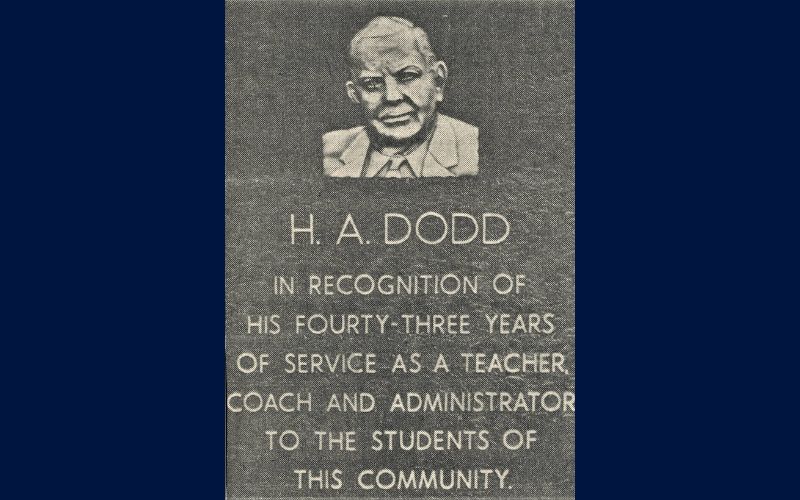On September 17, 1971, the Bellefontaine High School stadium and track were officially dedicated as Dodd Field in honor of Coach Harold A. Dodd. The plaque reads, “H.A. Dodd, in recognition of his forty-three years of service as a teacher, coach, and administrator to the students of this community.” After retirement, Dodd continued to support the Bellefontaine City Schools and was an inspirational speaker prior to important Chieftain games. Coach Dodd passed away unexpectedly in October 1978.
