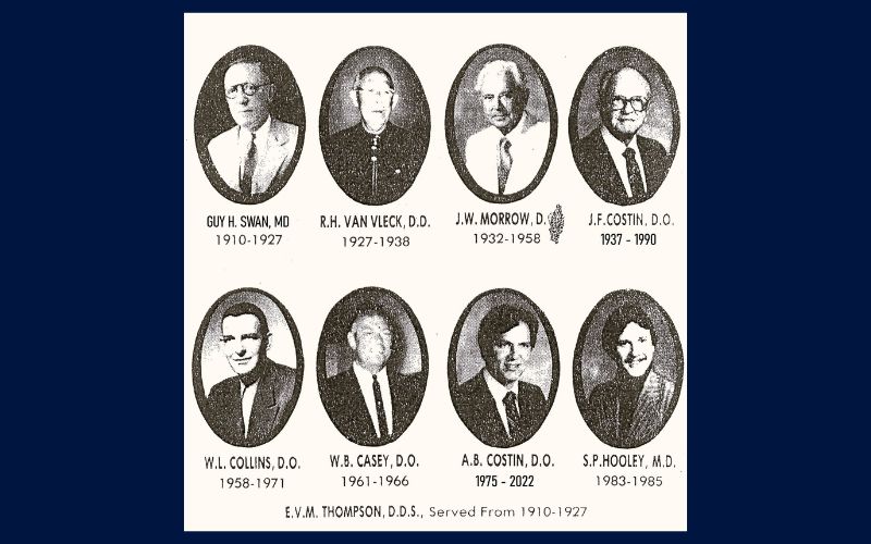 Dr. Marsha Turner was associated with the practice from 1990 to 1993. Dr. Thomas E. Darrah came to the Costin Family Practice as an intern and returned in 1992 after receiving his medical degree. Dr. Art Costin’s son, Dr. Scott Z. Costin, became the third generation to practice in the Swan Building in 1998. He received his degree from Ohio University College of Osteopathic Medicine.