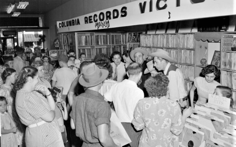 They also sold record players and a variety of LP albums and 45 single records. The DeLongs frequently had special musical events at their store. In August 1948, “America’s No. 1 singing group,” the Sons of the Pioneers, made a special appearance at their store after performing at Schine’s Holland Theatre. Their store was packed with fans who turned out to see the singers and get an autograph.