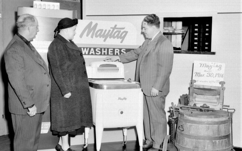 In April 1945, Charles and Ruth DeLong purchased the Tremont Block building at 138-140 S. Main St. After World War II ended, and the manufacture of large appliances resumed, the DeLongs were able to obtain franchises for GE and Maytag appliances.