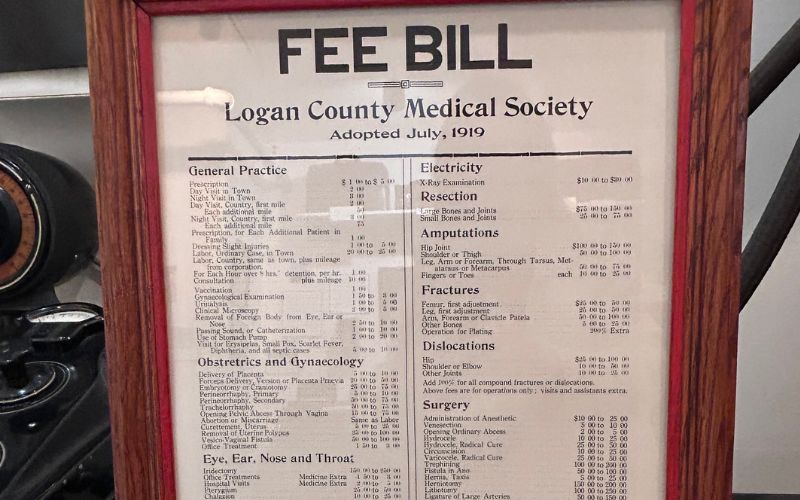The History Center has Dr. Charles L. Barrett’s X-ray machine and table, and other items from his medical office on exhibit in the Doctor’s Room of the Logan County Museum.