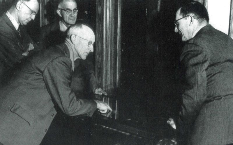 The Logan County Archaeological and Historical Society was organized at the Dr. Sloan Library in 1945 with O.K. Reames as president. They set up exhibits and display cases of various artifacts in the library. They used the library as their headquarters until their collection grew and they needed a larger facility. The Dr. Sloan Library still has some of the original artifacts on exhibit.
