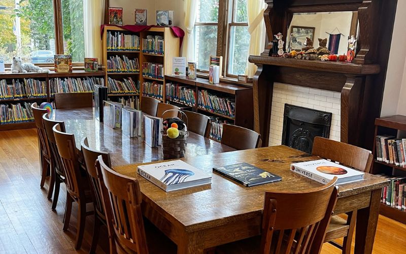 Over the years, the Dr. Sloan Library has seen little change. Other than a few modern updates, it still has the original charm of a small-town library. The library walls have oil paintings by local artist Warren Cushman, including a portrait of Dr. Sloan. A beautiful grandfather clock that once stood in Dr. Sloan’s home in Boston keeps accurate time in the children’s room.