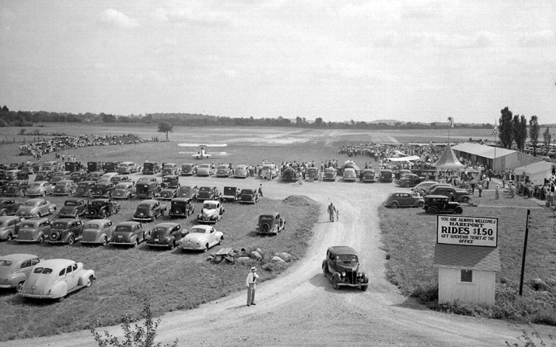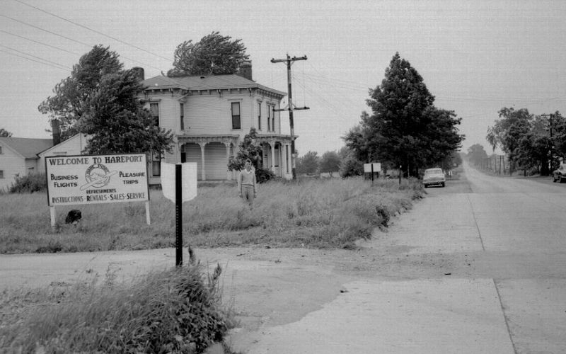 The privately owned Hareport opened on August 18, 1946. Highlights included a Lockheed P-80 “Shooting Star” flyover and a formation of P-47 Thunderbolts and B-25 Bombers from Lockbourne Air Base in Columbus. The airport was first managed by Keith Gimson, a former WWII Air Force Captain from Ypsilanti, Michigan. Hareport also had a canine mascot, “Fritz”, a German Shepherd, who served in the K-9 Corps with an honorable record.