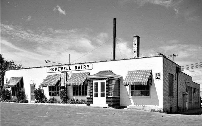 Hopewell Dairy was a popular location to purchase dairy products, and enjoy a meal or a delicious ice cream treat. Despite its popularity, the Hopewell Dairy retail store and restaurant closed in the mid-1970s.
