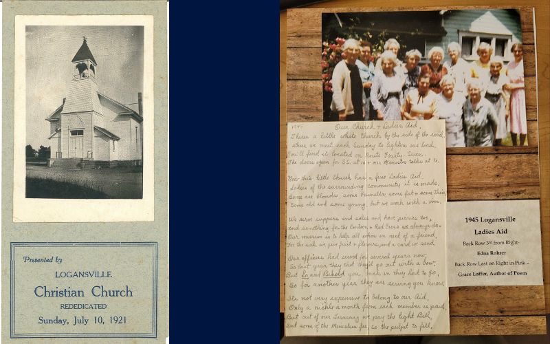 In the summer of 1815, a circuit-riding preacher of the New Light or Christian Faith from Cane Ridge, Kentucky visited the early settlement of Logansville. The meeting was held at a farmhouse and was well attended by the local settlers. The meetings were routinely held with various preachers until 1824. At that time, the families of the original pioneers united in the formation of the first religious society in Pleasant Township. Not long afterward a log meeting house was built in Logansville.