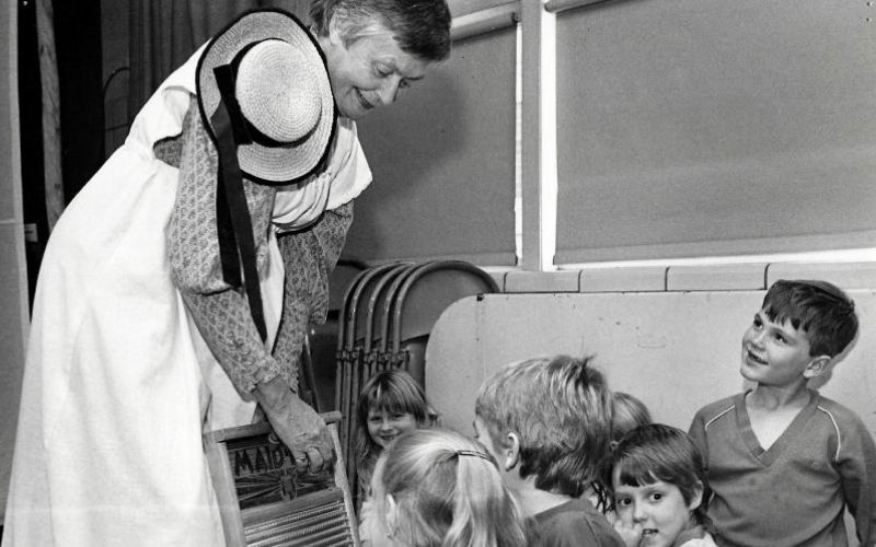 School touring was launched in 1985 with ‘Coming of Age’ about growing up on a farm at the turn of the century. The offering was so popular that Little Miami was able to employ a full-time company of performers presenting 8-10 shows per week throughout west central Ohio. Music also became an integral part of the performances when the company added Rick Good as a performer. Little Miami also conducted 3-4 school residencies each year in which the performers assisted students as they collected stories from older residents of their communities and created original plays based on their stories.