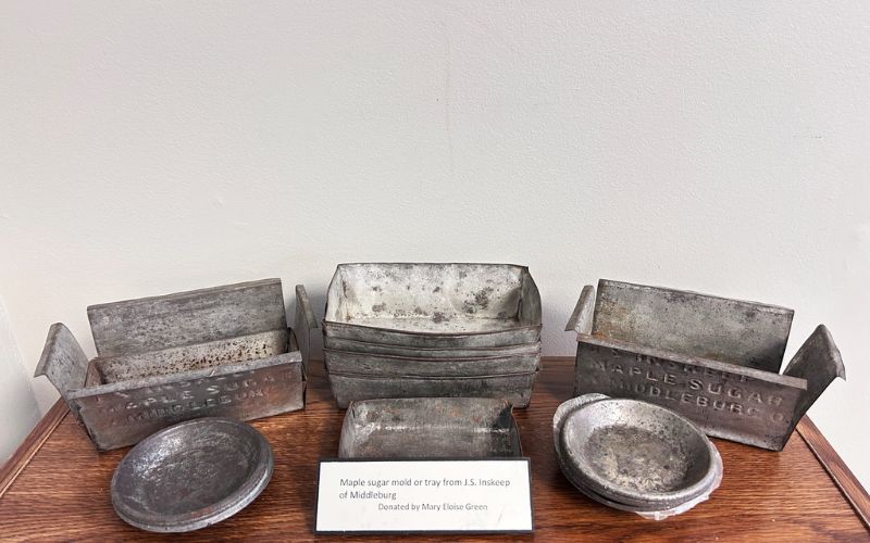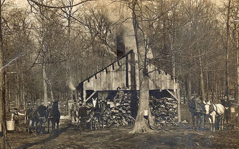Maple syrup production is one of Logan County’s oldest industries. In the latter part of the 1800s, many Logan County farms had groves of sugar maple trees. During the months between January and late March, they gathered sap from the trees and boiled it into either maple sugar or maple syrup. It takes an average of around forty gallons of sap to produce one gallon of syrup. The amount of sap needed depends on the sugar content, which can be influenced by various factors, including weather, water availability, and the time of year.