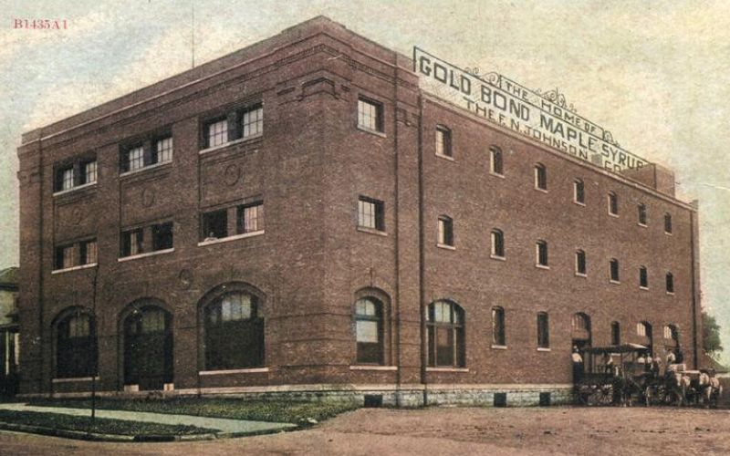 The F. N. Johnson Co. of Bellefontaine sold Maple Syrup commercially. Fletcher N. Johnson and James M. Abraham founded the wholesale grocery and maple syrup company in 1900. Both men had been successful producing and selling maple syrup prior to their partnership. They produced Gold Bond Maple Syrup and shipped it all over the United States.
