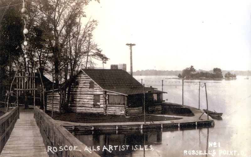 Two years later, Ails purchased the lease on Cottonwood Island, owned by the State of Ohio, cleared it of underbrush, and renamed it Artists Isle. There he built a bridge to the island and erected ten log bungalows for his theatrical friends to stay in when they visited Indian Lake. Ails stated “The players who will be drawn to the island will spend their time amusing the public. A large platform will be erected for the purpose of giving the public every sort of entertainment from a song and dance to a six-act vaudeville.”