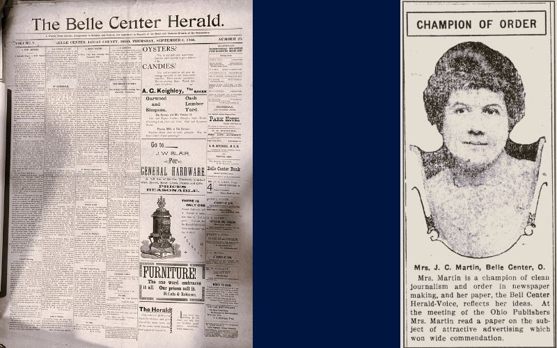 In 1903, John C. and Mary Jane Martin of Forest purchased the Herald. The next year, the Martins purchased the Voice and combined the two newspapers to form the Belle Center Herald-Voice. Wharton worked with the Martins until he accepted a position at a newspaper in Lakeside, Ohio.