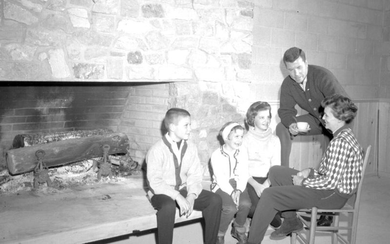 A new 40 x 56-foot addition designed by Zanesfield architect, Walter H. Lautenbach, was added to the lodge in August 1963. The contemporary style, open beam construction was erected across the front of the ski lodge and included large window areas for viewing the ski slopes. A massive fireplace was built with native stone and had American Indian artifacts scattered throughout the masonry.