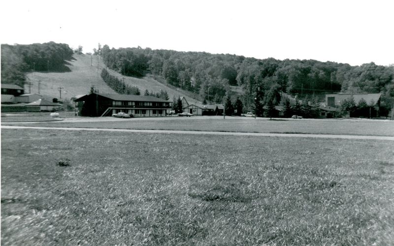 In early 1962, the Roscoe “Dutch” Connolly Construction Co. of Marysville was hired to begin clearing trees and developing the ski slope. He was the original builder of the Scioto Downs racetrack in Columbus. After clearing trees, a 2,000-foot ski run with a 300-foot vertical drop was constructed. This included clearing the hillside of rocks and stumps and seeding it to prevent erosion. The bottom of the ski area was cleared for the ski lodge and a 700-car parking lot. That summer the original 7,200 square foot lodge was built.