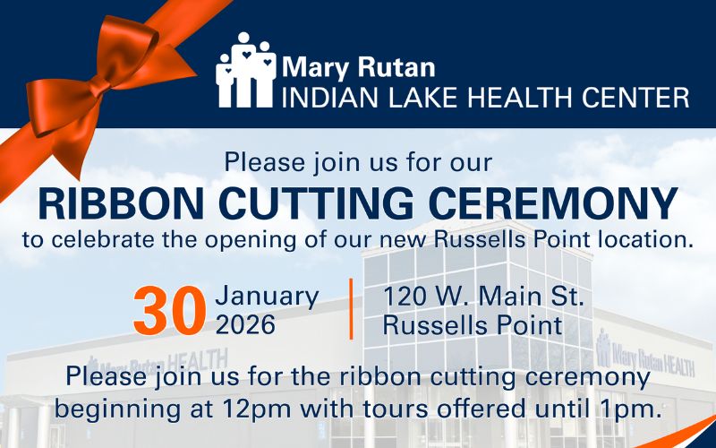 Mary Rutan Health, in partnership with the Indian Lake Chamber of Commerce, will celebrate the opening of the new Mary Rutan Indian Lake Health Center with a ribbon-cutting ceremony on Friday, January 30, from 12:00 to 1:00 p.m. at 120 West Main Street in Russells Point. The public is invited, and guided tours of the facility will follow the ceremony.