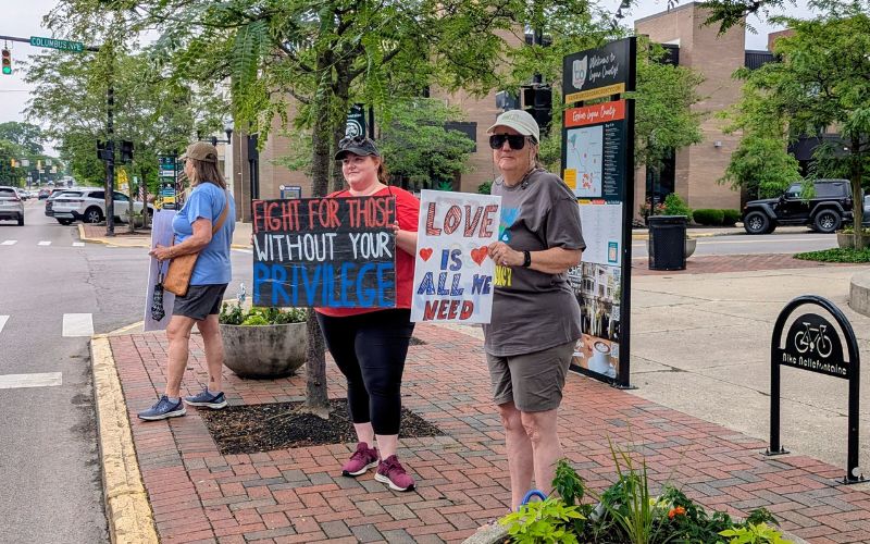 Locally in Bellefontaine, dozens crowded around the courthouse in downtown to express their thoughts, many held signs, and a few spoke to passersby.