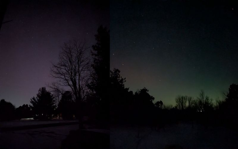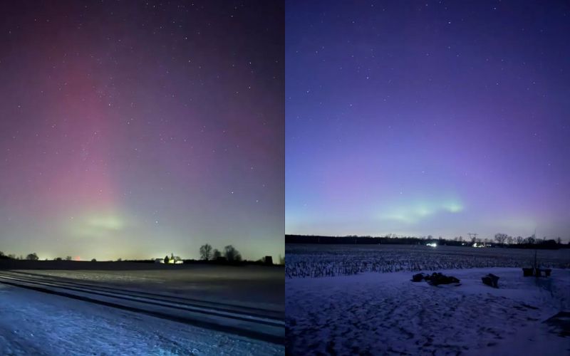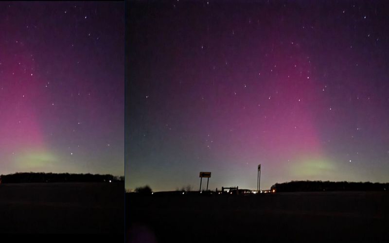 Further south, viewers spotted green and red glows along the northern horizon.