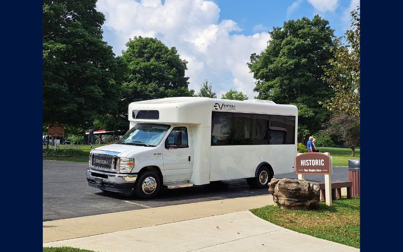 In recognition of 100 years as the Ohio Caverns, they recently introduced their newest addition to the green team… a 100-percent EV bus they use to transport guests for historic tours. It replaces their older gas-fed bus to help reduce costs and environmental impact. They charge the new bus three times a week at one of their four EV charging stations on site.