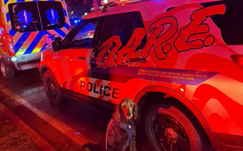 Among those taking part were Bellefontaine Police Department’s DARE Officer Chiles and his therapy dog, Raven, who were honored to participate in Operation Light Ohio Blue 2025.