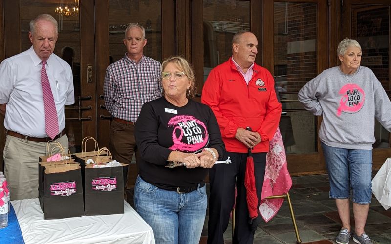 Bellefontaine celebrated and marked the occasion right in front of the Holland Theater and then moved in front of the Logan County Cout house, concluding with the lighting of the fountain pink and getting a survivor photo.