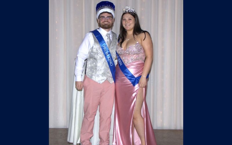 Once inside, the guests were greeted by a hallway filled with black and white photographs of past dances, class pictures, and personally submitted photos of the Junior and Senior Class. The rest of the venue included chandeliers, photo ops, and a wide open dance floor. Towards the end of the dance, the 2026 Prom King and Queen were announced, though the results didn’t surprise many. Leah Parrett and Evan Strayer were crowned Prom royalty, followed by a solo slow dance. Starting in 8th grade, 2022, Leah and Evan have been a couple. Since Sophomore year, there had been talk around the school of voting the pair as Prom King and Queen. They were both very excited to be voted for and had a lot to share about their experience.
