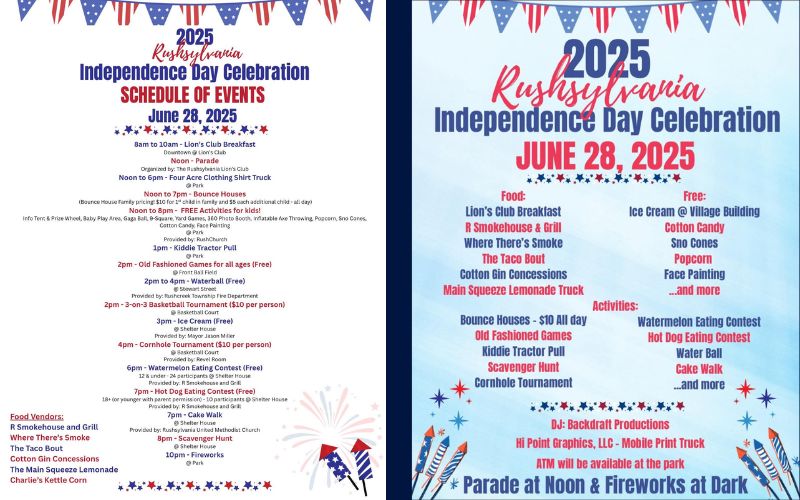 The Village of Rushsylvania will celebrate Independence Day on Saturday, June 28, 2025.