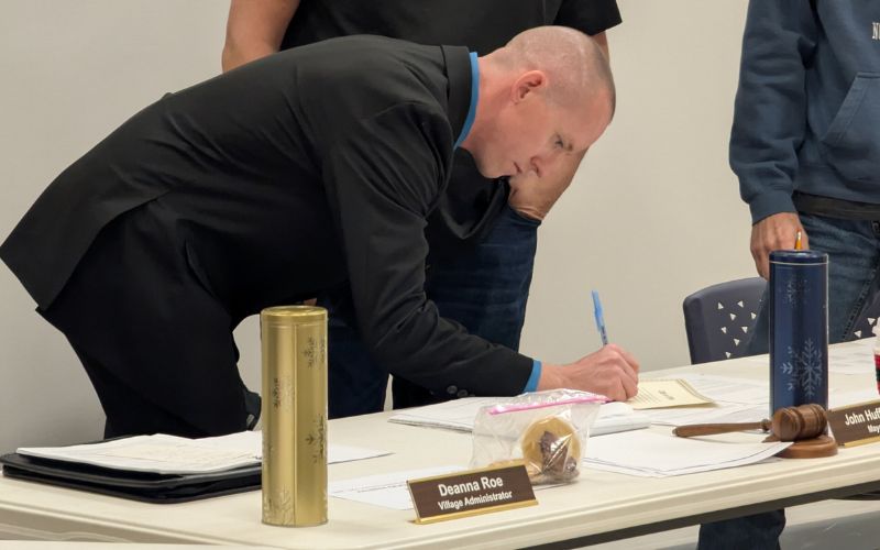 Police Chief Joe Freyhof and Mayor John Huffman presented Zac Beltz to the council for approval as the village’s newest police officer.