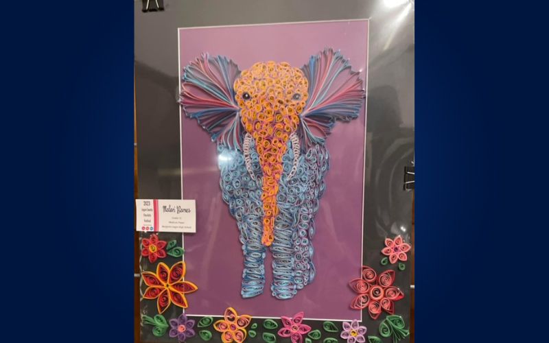 The completely acrylic painted piece created by Nora Elliott, grade 10, captured the attention of guests at the Logan County Art and Music Festival hosted for the first time by the Holland Theatre. Nora’s mother said, “Nora’s ability to create such detailed artwork amazes me and I couldn’t be more proud of her creativity. The modern artwork juxtaposed against the historic Holland Theatre provided a perfect backdrop.”