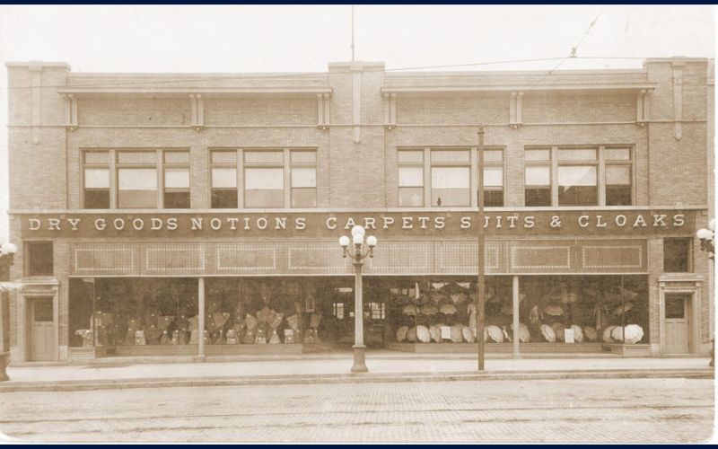 The building was erected in 1912 to house the new H.M. Annat Dry Goods which for many years was doing business in the Opera Block. The second floor of the store was used by the Deisel Wemmer Company for a branch cigar factory. The company became the R.G. Dunn cigar company and during it’s peak employed 200-300 employees. In 1934 this building became a Montgomery Ward Store and continued to operate until 1986.