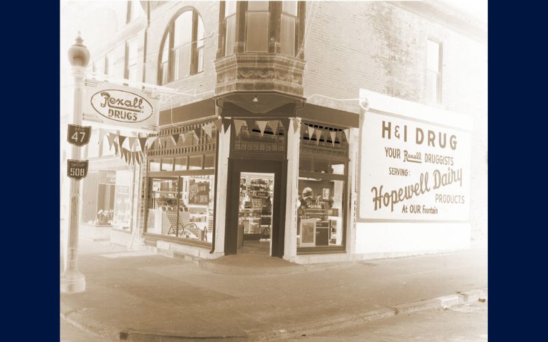 The Grand Opera House’s first performance was on December 23, 1880, featuring a presentation of “The Chimes of Normandy.” The auditorium of the Opera House could seat 956 patrons. Many big-name acts performed at the Grand Opera House, including Buffalo Bill Cody, John Philip Sousa, Harry Houdini, and Jenny Lind, to name a few. The storefronts on both Court Avenue and South Main Street have been filled with many businesses over the last 140 years, including Hutchin’s Dry Cleaners, White’s Music House, and Richelieu Pure Foods.
