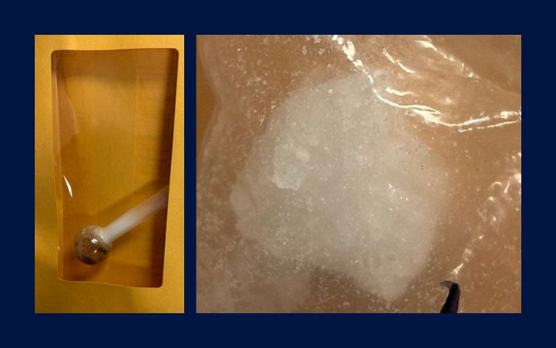 During the search, they discovered a bag containing a crystalline substance and a glass pipe with residue.