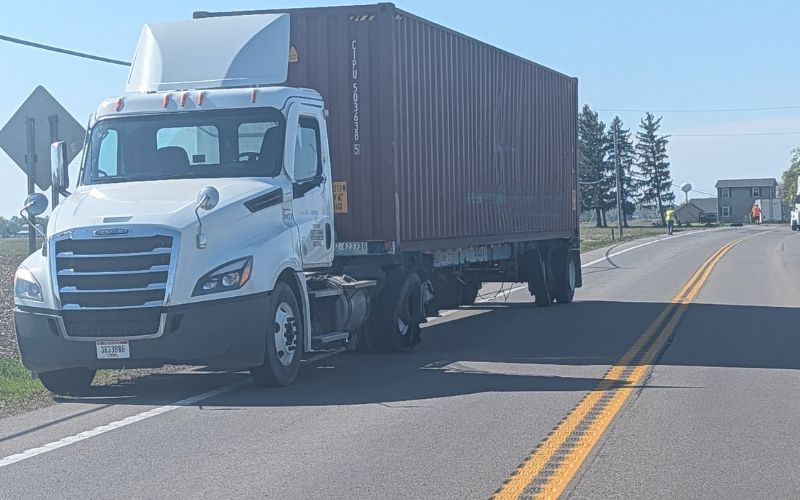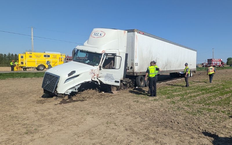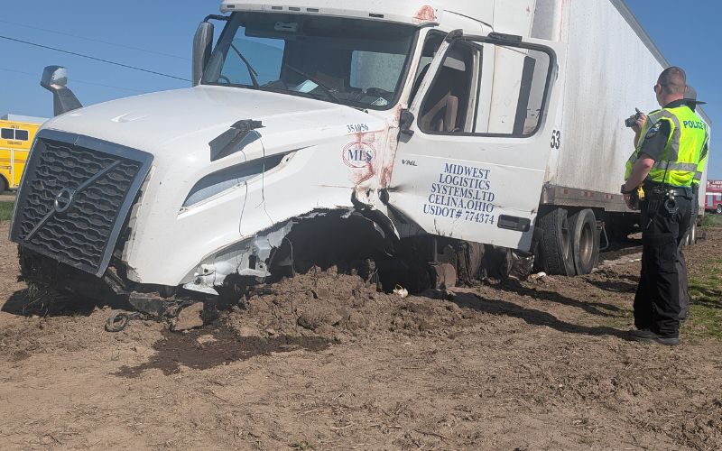 Authorities say one semi sideswiped another, sending a Midwest Logistics Systems semi off the left side of the roadway and into a nearby field.