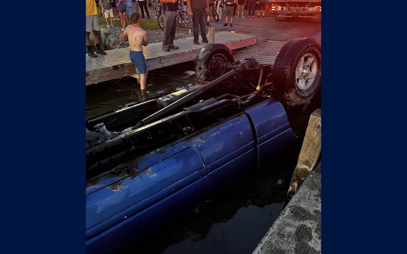 While trying to unload his boat, his pickup truck slipped into Indian Lake.