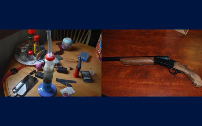 Several firearms were also found, including a sawed-off 12-gauge shotgun.