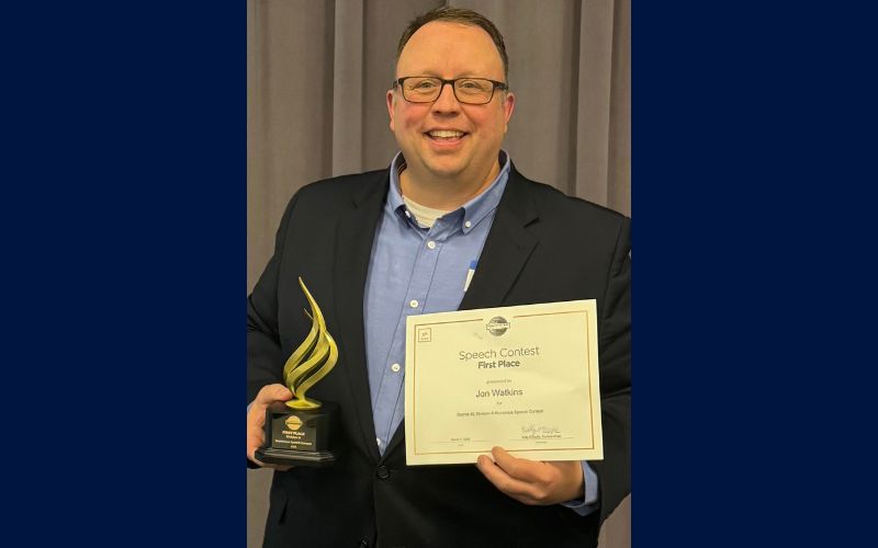 With the win, Watkins advances to compete at the District 40 Humorous Speech Championship at the Toastmasters District 40 Annual Conference in May in Newark, Ohio.