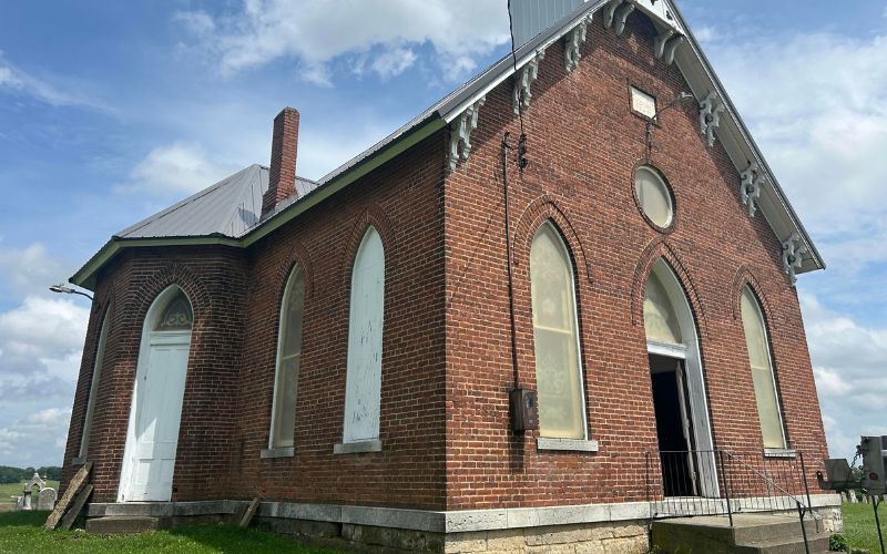 Perched on a hill surrounded by an active cemetery, this 1881 church is a historic treasure. Listed on the National Register of Historic Places, it is in the midst of a restoration to preserve its stunning stained-glass windows and original interior. The Salem Township Trustees continue to care for this landmark with a vision of welcoming future weddings, services, and community gatherings.