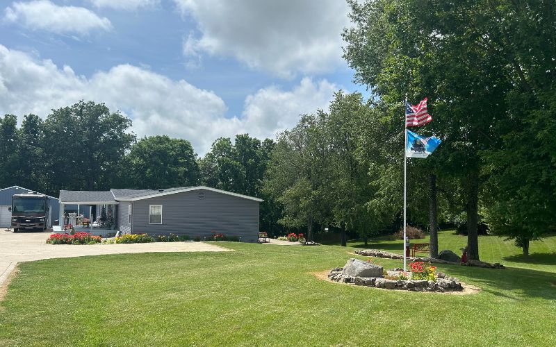 The Yoder grounds feature some adorable gardens along the banks of the river across from West Liberty Lions Park. The Yoder property combines welcoming landscaping and beautiful views of the valley.