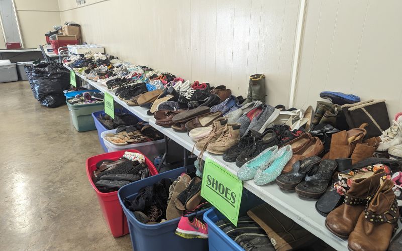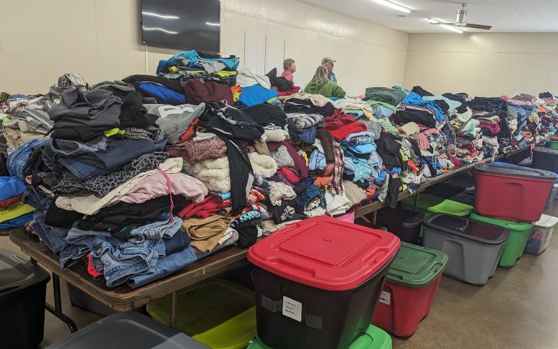 Offering the community to come and take as many clothing, bedding, and household items as they need, free of charge.
