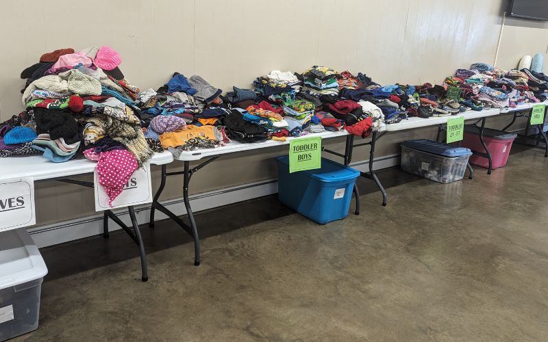 Items available will include but are not limited to, coats, hats, gloves, clothing, bedding, and household items.
