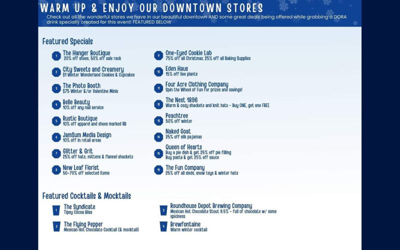There will be propane heaters outside and plenty of places to go inside and warm up, be sure to check out the shop specials below.