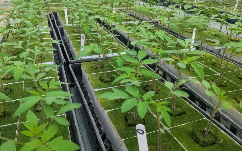 The tomatoes are grown in rockwool, a soil-less growing medium that helps the plants get the nutrients they need while keeping roots healthy.