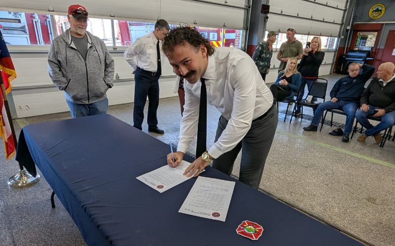 Now, just a few days later, Thursday morning, he raised his right hand and was sworn in as the newest member of the Bellefontaine Fire Department.