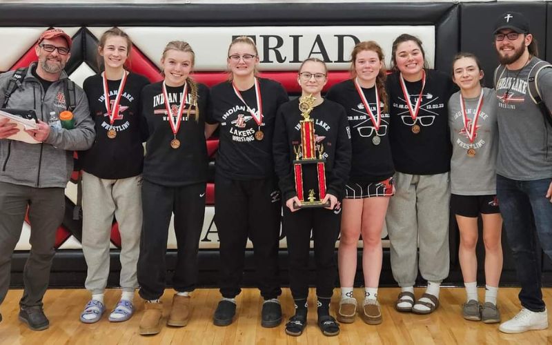 Indian Lake Lady Warriors wrestling team competed at the Triad girls wrestling tournament and came out with a second-place team title led by sophomore Kiylee Haude with a runner-up finish at 155.
