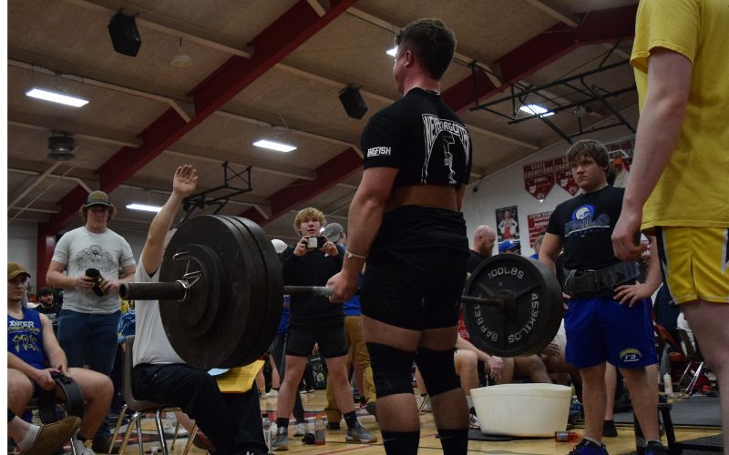 Bellefontaine High School senior Crew Sheeley flexed his muscles at the state powerlifting meet at Kenton on Saturday.